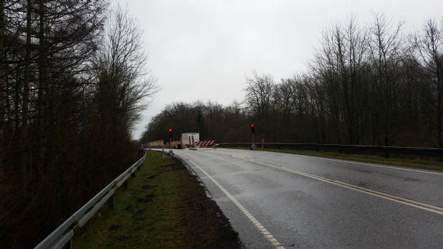 Ryeskovvej: Der vil kun være en vejbane farbar over jernbanen ved Ryeskov indtil 1. juli - hvis alt går vel. Trafikken reguleres af trafiklys.