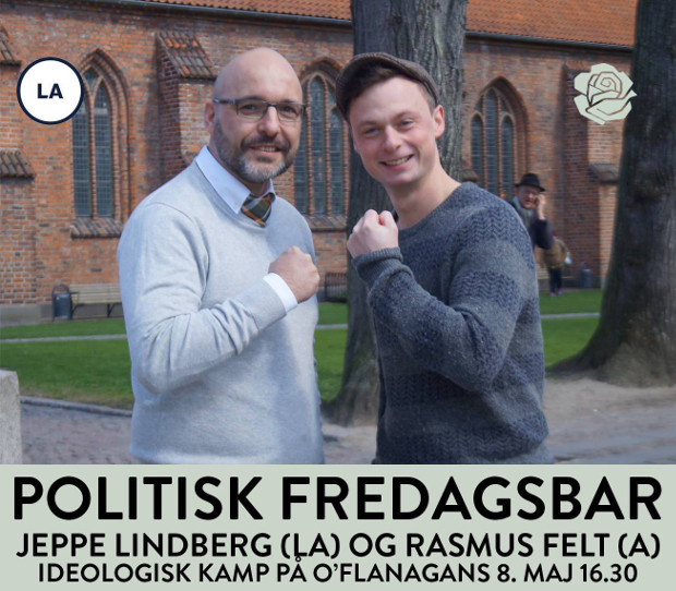 Jeppe Lindberg fra Liberal Alliance og Rasmus Felt fra Socialdemokraterne har sat hinanden stævne på O'Flanagans i Køge for at debattere de ideologiske forskelle mellem de to partier.