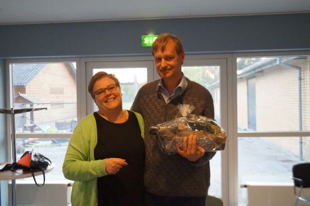 Frank Åberg med det synlige bevis på han er Årets Leder i Borup IF i 2014. Her er Frank Åberg fotograferet med formanden for Lions Club Skovbo Villi Mortensen.