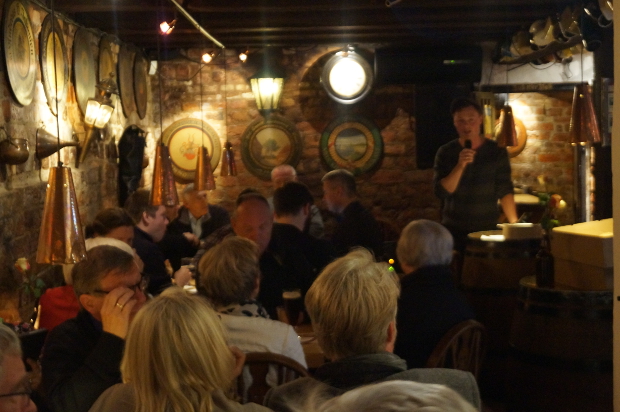 Hverdagsnyt var taget til 1. maj møde i Hugo's kælder hvor Socialdemokraterne i Køge afholdte deres 1. maj arrangement. Der var høj stemning i den godt fyldte kælder.